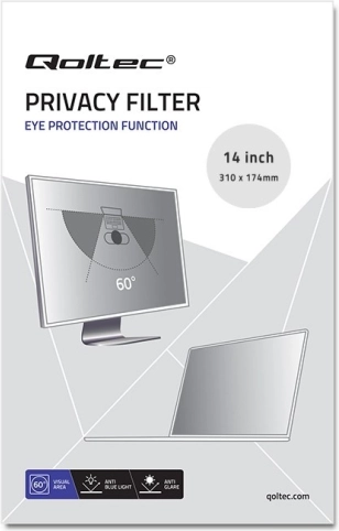QOLTEC-privatlivsfilteret forhindrer effektivt uønskede sideblik, så skærmindholdet forbliver sikkert i åbne kontorlandskaber, på farten eller i kundevendte miljøer. Avancerede mikrolameller giver behagelig læsning forfra i et område på ca. 60°, mens billedet mørknes markant og bliver ulæseligt allerede fra ~30°. Den matte, antirefleks-overflade minimerer genskin, og blokering af blåt lys mindsker øjentræthed under lange arbejdsperioder.