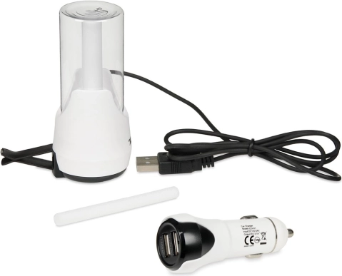 Enheden er designet til daglig brug – nem påfyldning af tanken, støjsvag drift og et moderne design, der ikke forstyrrer bilens interiør. Takket være USB-udgang 5V/2,1A oplader du hurtigt telefon, hovedtelefoner eller navigation, mens diffuseren hjælper med at reducere tør luft og ubehagelige lugte.