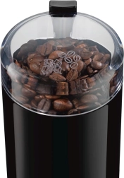 Gennemsigtigt låg til kontrol af malingen og kapacitet op til 75 g bønner for flere kopper ad gangen.