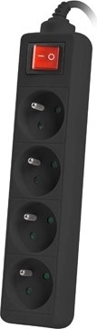 Sort forlængerledning 1,5 m med 4 stikdåser og afbryder