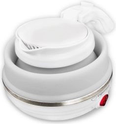 Det silikonebaserede, sammenfoldelige kedelhus foldes nemt til en kompakt form. Ideelt til kuffert, rygsæk og små køkkenborde.