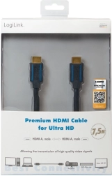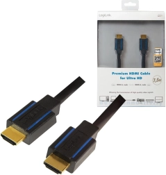HDMI Kabel Ultra HD 7,5m Premium tilbyder fremragende overførsel af billede og lyd. De forgyldte stik sikrer høj kvalitet af signaloverførsel.