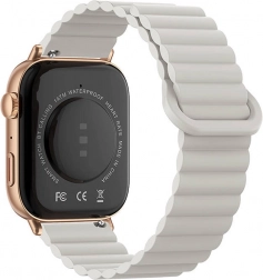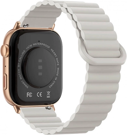 - Metalkabinet i zinklegering, magnetisk silikonerem, komfortabel at bære
