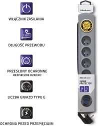Designet i overensstemmelse med de nyeste trends, i en elegant grå farve, passer perfekt til ethvert interiør. Antioverkoblingsbeskyttelse beskytter tilsluttede enheder mod spændingsudsving ved hjælp af en højeffektiv varistor.