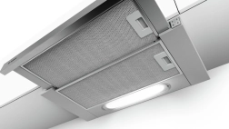 Den indbyggede emhætte DFT63AC50 er en praktisk løsning til små og mellemstore køkkener. Den muliggør både effektiv udsugning og recirkulation, så den kan tilpasses din boligs indretning. Dens stille gang og enkle betjening sikrer komfortabel brug, mens kvalitetsfiltre opfanger fedt og uønskede lugte.