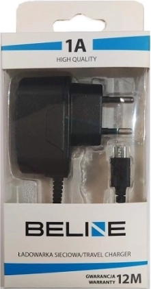 BELINE vægoplader med integreret micro USB‑kabel, udgang 1 A, sort. Moderne design og beskyttelse mod overspænding og overopladning for sikker opladning.