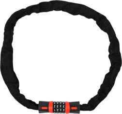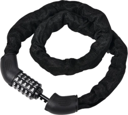 Sikr din cykel, løbehjul eller scooter pålideligt med en robust kædelås med kombination. Takket være den 5-cifrede kode får du op til 100.000 indstillingsmuligheder, hvilket markant øger beskyttelsen mod uautoriseret åbning. Det beskyttende tekstilovertræk forhindrer lakskader, og låsen er desuden korrosionsbestandig.
