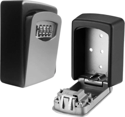 Det praktiske nøgleskab med kraftigt kabinet i zinklegering beskytter indholdet mod uautoriseret adgang og opbrudsforsøg. Den 4-cifrede kode giver delt, men kontrolleret adgang for familie, gæster eller serviceteknikere.
