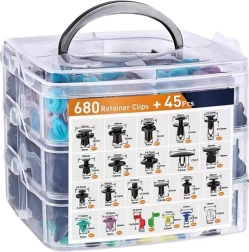 Sættet indeholder 23 af de mest almindelige størrelser af klemmer, stifter og klips, der ofte anvendes i de fleste bilmærker og modeller. Lavet af holdbar plastik, klemmerne sikrer langvarig brug selv under krævende forhold.