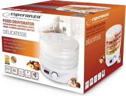 Med en effekt på 250 W og en integreret ventilator sikrer tørreapparatet hurtig, grundig og jævn tørring af produkterne, hvilket hjælper med at bevare alle aromatiske og smagsmæssige egenskaber. Takket være den kompakte størrelse passer det nemt ind selv i et lille køkken, og opbevaring bliver ikke et problem.