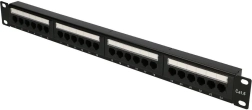 Patchpanelet er lavet af solidt metal, hvilket sikrer dets holdbarhed og stabilitet ved montering i rack.