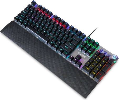 Den specielle kontrolknap muliggør nem ændring af belysningsmodus eller lydstyrke, hvilket øger komfort ved brug. Tastaturet er et ideelt valg for krævende gamere takket være muligheden for at låse kombinationen Win+L, hvilket forhindrer utilsigtet låsning af computeren under spil.