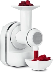 Denne multifunktionelle robot er en fantastisk hjælper i køkkenet, der sparer tid og tilbyder sunde muligheder for hele familien. Enheden gør det muligt at forberede frugtdesserter af frosne frugter hurtigt og dermed tilbyder et sundt alternativ til klassisk is.