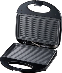 Non-stick-overfladen forhindrer fastbrænding og gør rengøringen nemmere. De rillede plader giver dine sandwiches et flot grillmønster og en sprød skorpe.