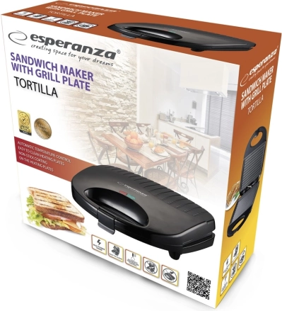 Nyd hurtig tilberedning af dine yndlingssandwiches og tortillas. Den kraftige effekt på 1000 W sørger for kvik opvarmning, mens automatisk temperaturregulering holder de ideelle betingelser for jævn ristning.