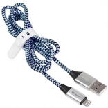 Højkvalitets USB 2.0 Lightning-kabel i et moderne sort-blåt design, ideelt til iPhone- og iPad-brugere. Perfekt til hurtig opladning og pålidelig dataoverførsel.