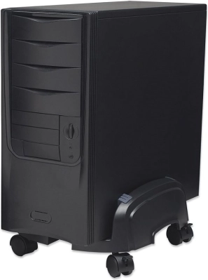 Hold din stationære computer beskyttet og altid inden for rækkevidde. Dette sorte underlag med hjul løfter PC-kabinettet fra gulvet, beskytter mod støv og utilsigtet spild, og forbedrer samtidig luftgennemstrømningen. Den justerbare bredde 155–255 mm passer til de fleste computerkabinetter.