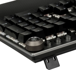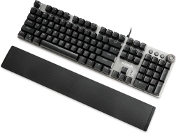 Dette tastatur inkluderer en magnetisk tilkoblelig håndledsstøtte, der hjælper med at reducere håndtræthed under lange spilsessioner. Der er en Fn-tast til at udnytte funktionstasterne til multimedieopgaver som at kontrollere afspilleren eller åbne en webbrowser.