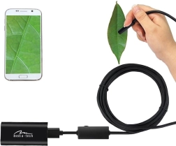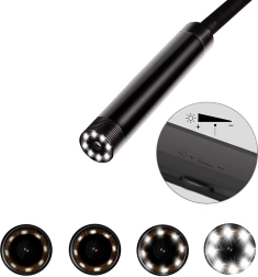 Det fleksible 5 meter kabel er let at føre gennem snævre bøjninger, og det robuste kamerahoved med 8 mm diameter passer i små åbninger. Seks klare LED‑dioder med trinløs lysstyrkeregulering sikrer et skarpt billede selv i totalt mørke. For at øge effektiviteten kan sonden udstyres med et spejl, en krog eller en magnet – ideelt til at lokalisere og hente små genstande.