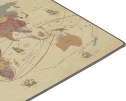 Discoveries Maxi-måtten giver en rummelig overflade til behagelig brug af både mus og tastatur. Takket være den store størrelse beskytter den også dit bord mod skader. Den specialdesignede grafik med verdenskort og markeringer af vigtige geografiske opdagelsesrejser tilfører et unikt æstetisk element til enhver arbejdsplads eller hvert kontor.