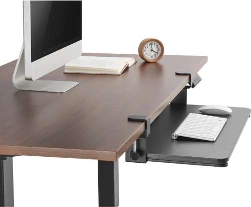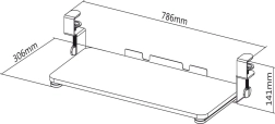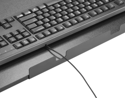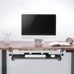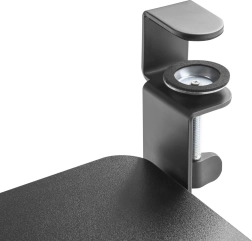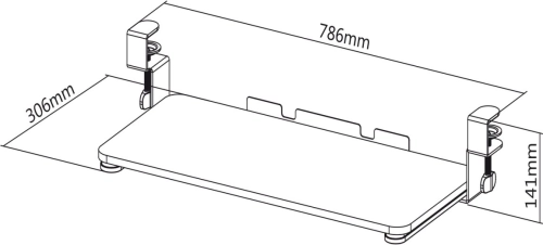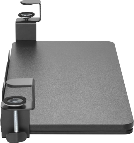 Underbordshylden MC-839 fastgøres let til bordkanten med stærke klemmer, så du hverken behøver at bore i pladen eller bruge værktøj. Den brede flade giver rigelig plads til både tastatur og mus, hvilket frigør arbejdsfladen og forbedrer siddeergonomien.