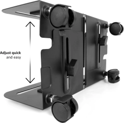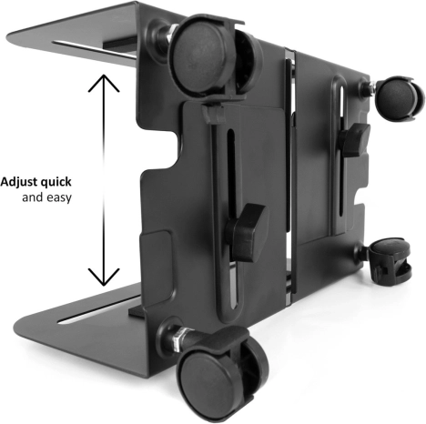Hold dit PC-kabinet sikkert og altid inden for rækkevidde. Den mobile stand med robust konstruktion gør håndteringen nemmere, forbedrer adgangen til porte og hjælper med at reducere ophobning af støv fra gulvet. Takket være det justerbare område 119–209 mm tilpasses den de fleste PC-kabinetter, og indvendige beskyttelsesskumpuder forhindrer ridser.