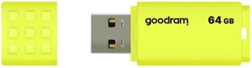 Det kompakte USB-flashdrev GOODRAM NEO 64 GB i en markant gul farve tilbyder pålidelig lagring og overførsel af data. Den praktiske hætte med skridsikker tekstur beskytter stikket og kan sættes på bagsiden, så den ikke bliver væk. Et ideelt valg til daglig brug og på farten.