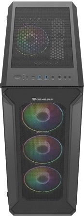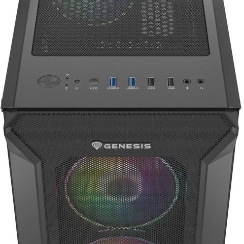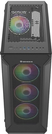 GENESIS Irid 505 V2 ARGB kombinerer førsteklasses køling, elegant design og gennemtænkt funktionalitet. Den perforerede front og fire forinstallerede 120 mm ARGB-blæsere sikrer fremragende luftgennemstrømning, mens sidepanel i hærdet glas fremhæver komponenter og lyseffekter. På topanellet finder du 4× USB (2× USB 3.0), lydstik samt en knap til ændring af ARGB-tilstande.