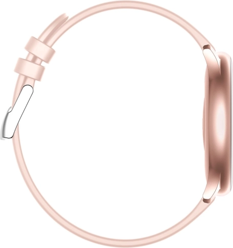 Oplev kombinationen af elegance og funktionalitet. De smarte FIT neon-ure med rund touchskærm viser tydeligt dine daglige statistikker og telefonbeskeder, mens den sarte rosa rem og den gyldne metalkasse understreger din stil.