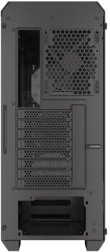 Praktisk tilslutning og konfiguration: Frontpanelet tilbyder 4 USB-porte, hvoraf 2 er USB 3.0, og to lydjack porte til hovedtelefoner og mikrofon. Kabinettet understøtter op til 5 SSD'er og tilbyder også pladser til et par standard HDD (eller yderligere SSD), og er kompatibel med tre størrelser bundkort.