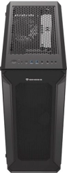 Stilfuldt og holdbart design: Kabinettet er udstyret med et perforeret frontpanel og sidepanel i hærdet glas, hvilket gør det til en elegant del af dit udstyr. Det flotte design tilføjer stil til dit rum og gør det visuelt attraktivt.