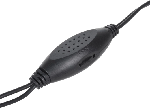 En in-line controller på kablet lader dig justere lydstyrken med det samme uden at lede efter ikoner i systemet.