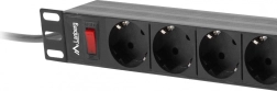 Lanberg PDU’en har 9 Schuko-udtag, hvilket muliggør samtidig tilslutning af flere enheder, og er designet til horisontal montering.