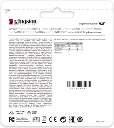 Takket være det holdbare plastkabinet, den beskyttende hætte og det praktiske øje til rem er det ideelt til både rejse og arbejde. Pålideligheden understreges af 5 års garanti og gratis teknisk support fra producenten KINGSTON.