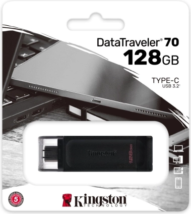 Kingston DataTraveler 70 er et kompakt USB‑C flash‑drev, der problemfrit arbejder sammen med moderne enheder – fra bærbare og tablets til smartphones. USB 3.2 Gen 1 sikrer hurtig filoverførsel og bekvem daglig brug.