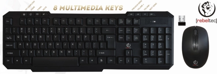 Fuldt tastatur med US QWERTY-layout og slankt tasteprofil giver behagelig skrivning. 8 multimedietaster gør det hurtigere at styre musik, lydstyrke og browser. Musen med optisk sensor på 800 DPI og gummieret overflade giver et sikkert greb til daglig brug.