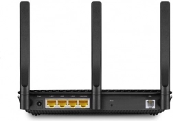 Der er en USB 3.0-port og fire Gigabit Ethernet-porte til hurtige kablede forbindelser og fildeling. Enheden inkluderer en række nyttige knapper, herunder WPS, Nulstil samt tænd/sluk for LED.