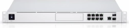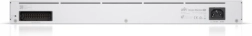Enheden inkluderer en 8‑ports Gigabit‑switch med en kombination af RJ45 og 10G SFP+ for fleksible topologier. Takket være UniFi Protect (NVR) med mulighed for 3,5" HDD bliver enheden et centralt knudepunkt for videoovervågning uden behov for ekstra hardware. Sikkerhedspakken suppleres af IPS/IDS og DPI til avanceret inspektion af trafikken.