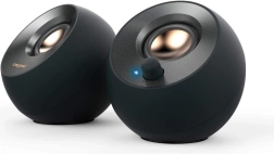 De skrånende 2″ drivere med 45° hældning peger direkte mod dig, og sammen med de passive radiatorer leverer de fyldigere bas og en mere levende oplevelse af film, spil og musik. De minimalistiske, kugleformede satellitter sparer plads på skrivebordet, og det længere forbindelseskabel gør placeringen nemmere.