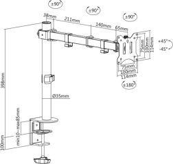 Skærmbeslaget giver fremragende mulighed for individuel justering af skærmen for optimal ergonomi. Det er velegnet til skærme i størrelsen 15"-32" med en maksimal bæreevne på 8 kg.