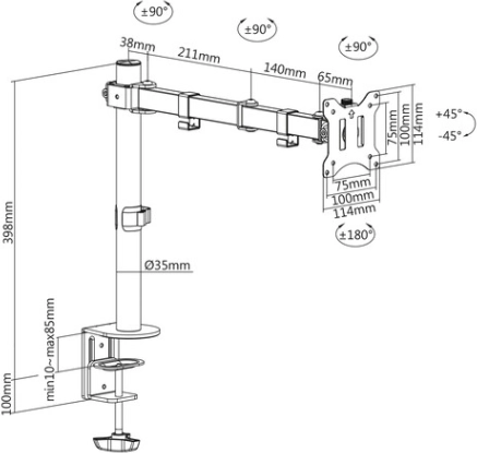 - 360° drejemekanisme på VESA-beslaget