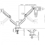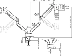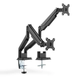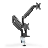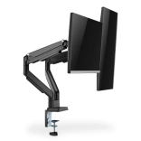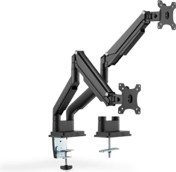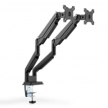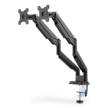 Dobbelt skærmarm muliggør nem og ergonomisk arbejde med skærme fra 15" til 32". Armen justeres let takket være den integrerede gasfjeder og tilbyder brede positioneringsmuligheder for maksimal komfort.
