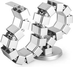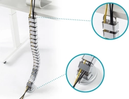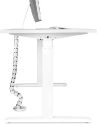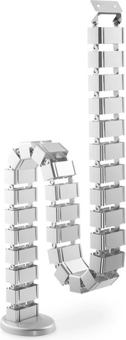 Denne elastiske kabelskjuler i “rygrad”-design skjuler og organiserer elegant kabler fra gulv til bordplade. Takket være den modulære konstruktion kan længden nemt forkortes eller forlænges efter bordhøjden op til 130 cm. Den vægtede base holder spiralen stabilt på gulvet, mens de fleksible led bevæger sig jævnt ved sænkning af det højdejusterbare bord.