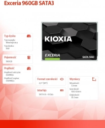 SSD-disk KIOXIA Exceria 960GB er designet som et mere ydelsesstærkt alternativ til traditionelle harddiske og tilbyder optimale parametre og pålidelighed takket være BiCS FLASH-teknologi. Det er den ideelle løsning til at modernisere din stationære eller bærbare computer.