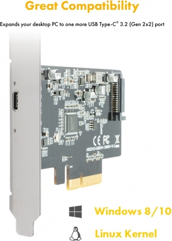 PCIe-kort med USB‑C 3.2 Gen 2x2 (20 Gb/s)