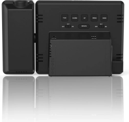 Oplad telefonen via den integrerede USB-port direkte på natbordet. Det store LCD-display viser tid, dato og temperatur, og lysstyrken kan reguleres trinløst ved netdrift.