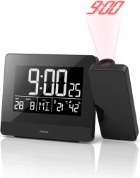 Nyd maksimal komfort ved aflæsning af tiden selv midt om natten. Den drejelige projektor med 360° rotation projicerer tiden på loft eller væg præcis der, hvor du har brug for den. Den præcise tid sikres af DCF-radiostyring med automatisk synkronisering, og tidszonen kan om nødvendigt justeres manuelt.