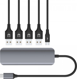Universel tilslutning: Nemt tilslut op til fire perifere enheder, hvad enten det er mus, flashdrev, grafiske tablets eller store eksterne drev. uHUB P5+ tilbyder forskellige varianter af parametre, så alle kan finde den ideelle hub til sig selv.