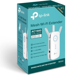 TP-Link RE550 eliminerer pålideligt svage Wi‑Fi-zoner og udvider dækningen til meget store områder. Takket være AC1900-teknologi leverer den høje hastigheder på både 2,4 GHz og 5 GHz, så 4K-streaming, onlinespil og hjemmearbejde kører uden udfald.
