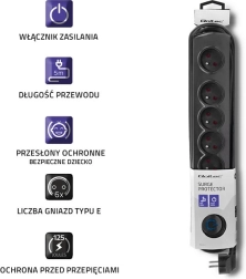 Denne overspændingsliste er en ideel løsning til kabelhåndtering ved skrivebordet, ved tv’et eller i køkkenet. Med 6 stik kan du tilslutte flere enheder samtidig, og det 5 m lange kabel giver frihed til placering. Den bagbelyste fodkontakt Quick Switch gør det nemt at tænde og slukke uden at bøje sig.